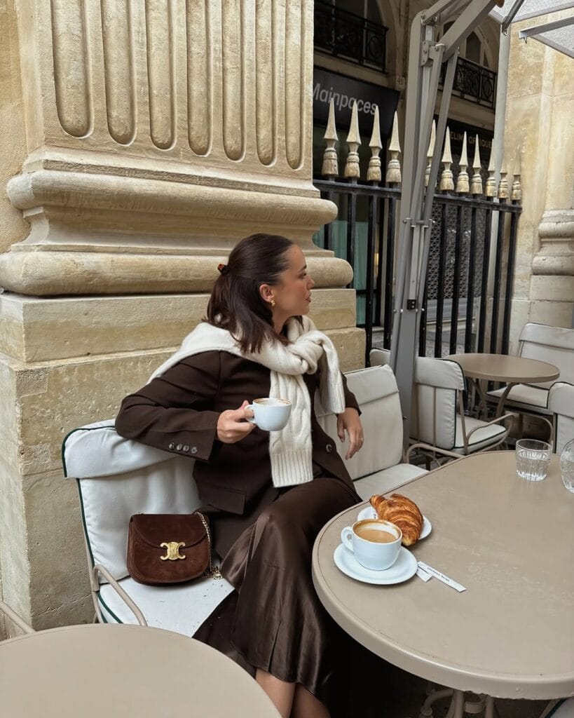 @ fleurraffanThis outfit oozes quiet luxury: a chocolate brown blazer over a glossy brown silk midi skirt, with a cream sweater casually draped at the shoulders. Itās cafĆ©-ready and elegantāperfect for leisurely fall mornings in the city.
