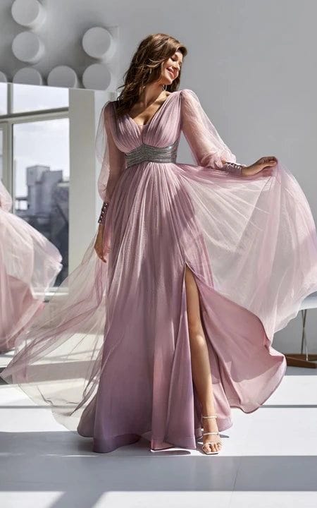 3. Chiffon Dusty Pink Front Split Dress: Romantic and Graceful for Autumn
