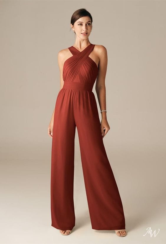 The chiffon infinity jumpsuit offers versatility and grace for autumn weddings.