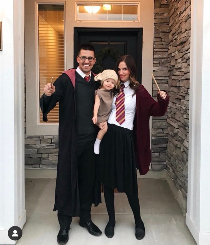 Step into a wizarding world with Harry Potter and his Hogwarts crew, complete with magical robes, classic ties, and even a mini witch-in-training on your hip! The coordinated family outfits bring pure joy and spellbinding cutenessāguaranteed to make your Halloween memories stand out.