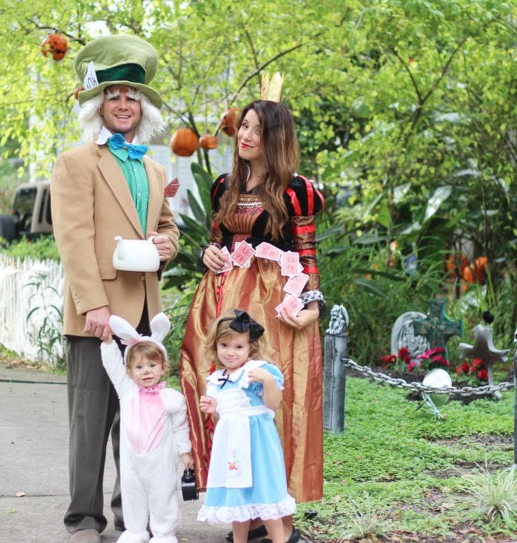 Unlock a world of magic with Alice in Wonderlandās fanciful family castācomplete with Alice, the Mad Hatter, Queen of Hearts, and a precious White Rabbit on Halloween night! These charming, storybook-inspired outfits promise whimsical photos and unforgettable family fun.