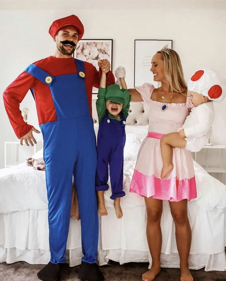 Bring all the video game joy to life with a Mario crewāMario, Luigi, Princess Peach, and a baby Toad for a world-jumping, coordinated look! Full of bright color and playful energy, itās a perfect, photo-ready family costume for power-up fun.