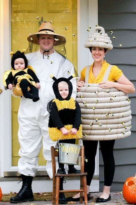 Buzz into Halloween sweetness with a bee family ensemble: a beekeeper, two bumblebees, and a honey-filled hive for adorable family fun! These cheerful matching costumes promise photo-worthy smiles and a hive of happy Halloween memories for everyone.
