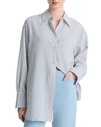 8. Striped Oversized Shirt and Wide-Leg White Pants