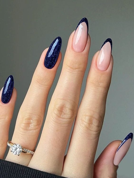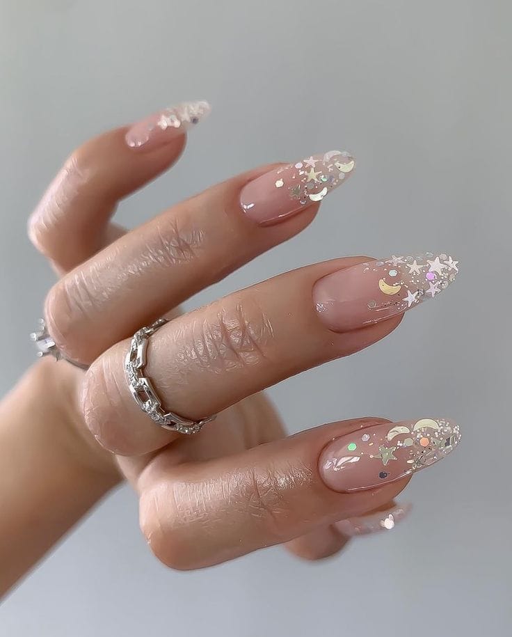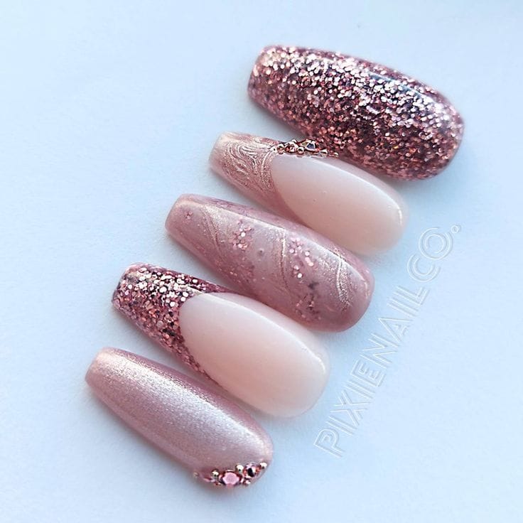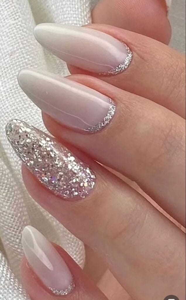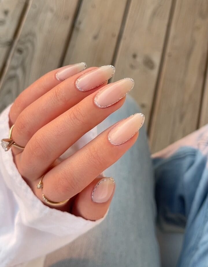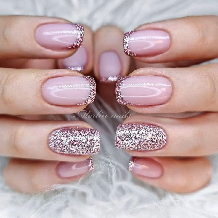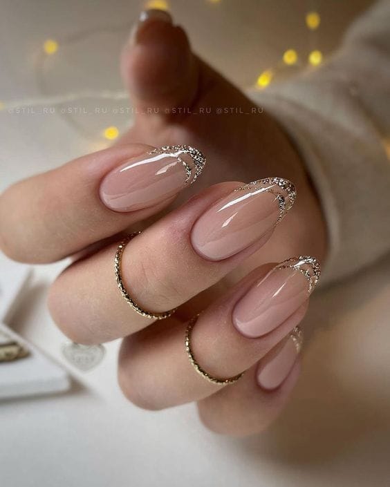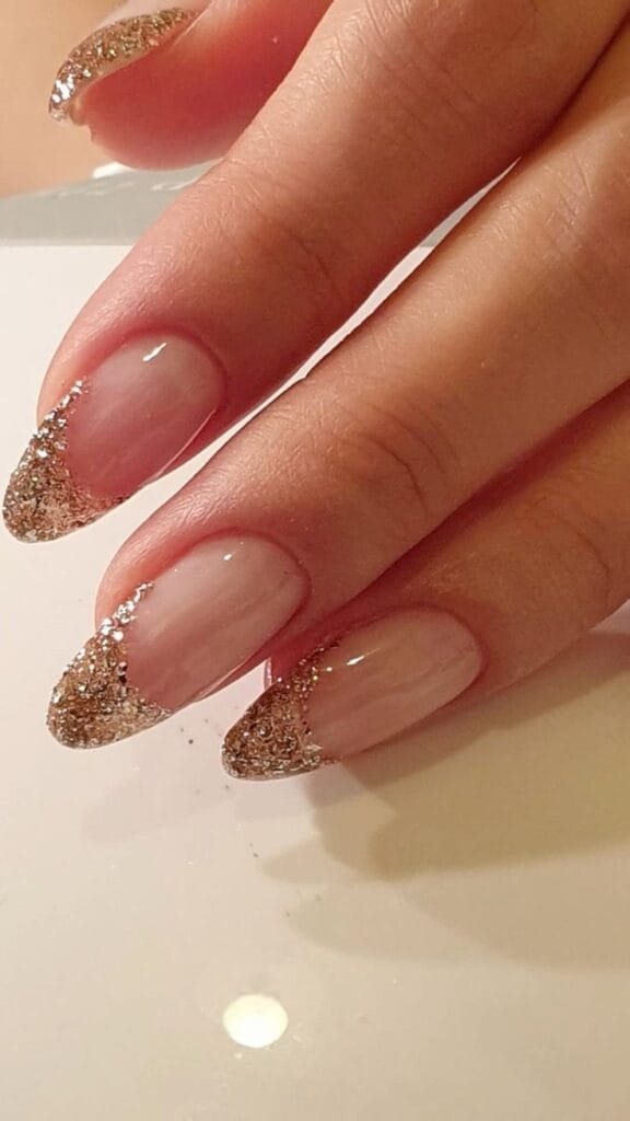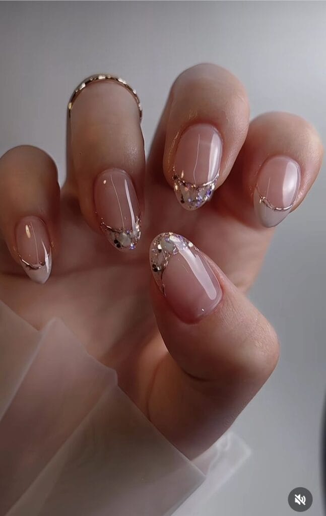 These glamorous nails elevate the classic French manicure with a stunning gold sparkle, ensuring you stand out as you celebrate your achievements.