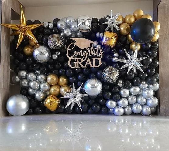 Whether it’s motivational quotes or personalized messages, this backdrop creates a visually appealing setting for capturing cherished moments during your graduation celebration.