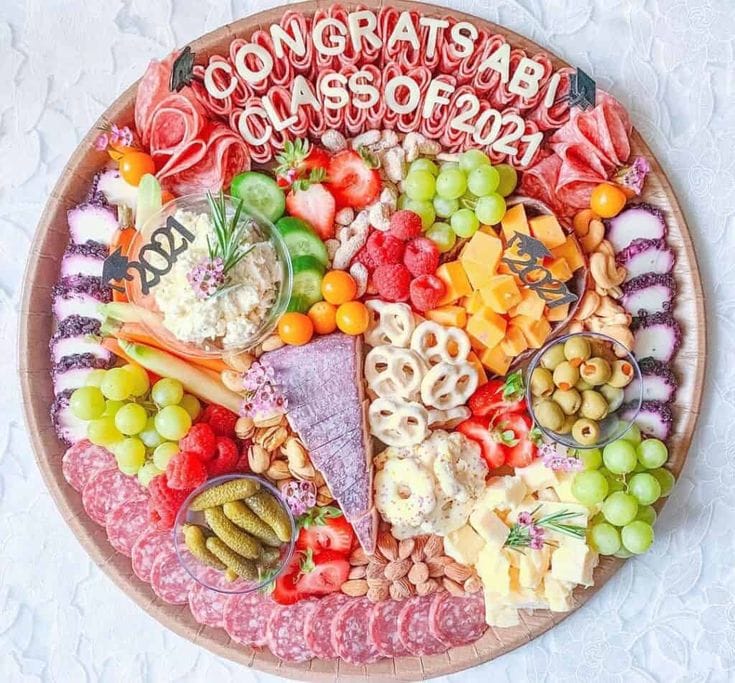 Elevate your party’s culinary experience with a Congrats Grad Cheese Board. This delectable arrangement of cheeses and accompaniments not only satisfies taste buds but also serves as a savory centerpiece.
