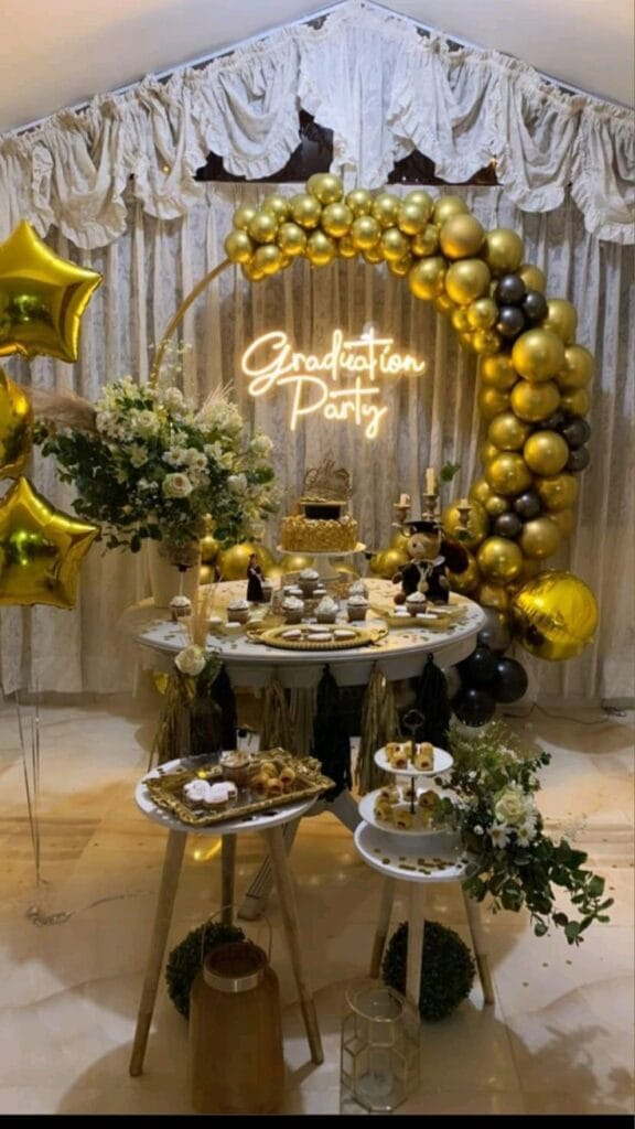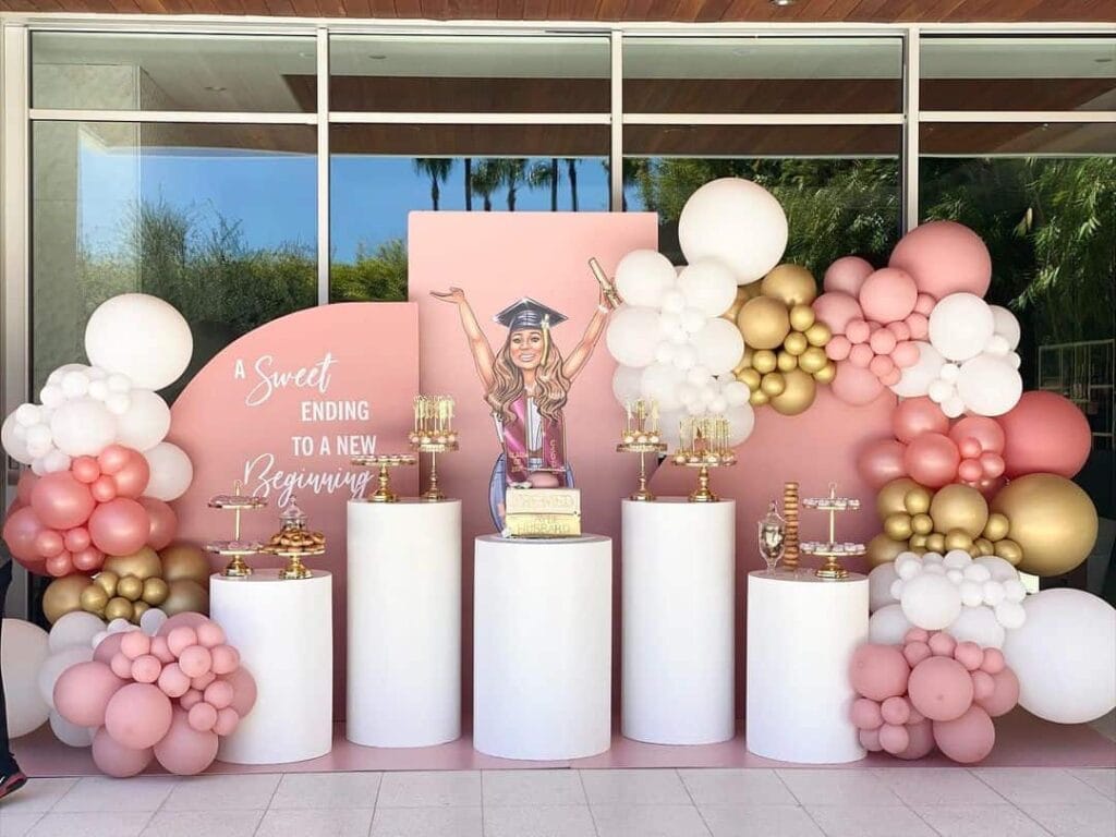 This eye-catching display sets the tone for a festive celebration, inviting everyone to step into a world of graduation joy and excitement.