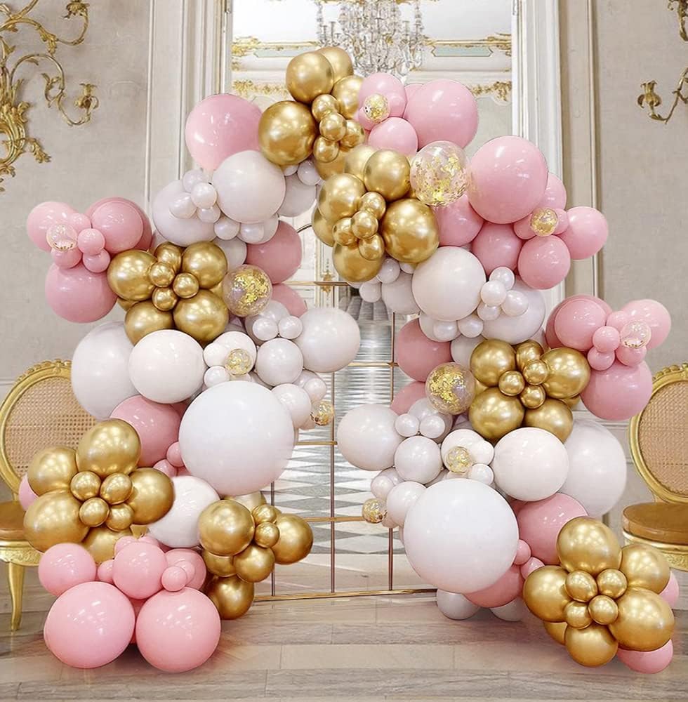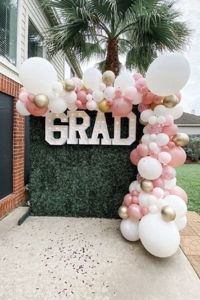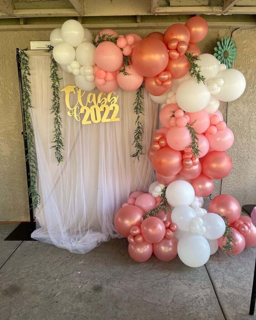 52. Pink Themed Grad Party Backdrop with Balloon Garland
