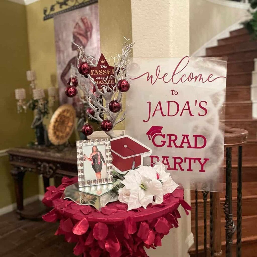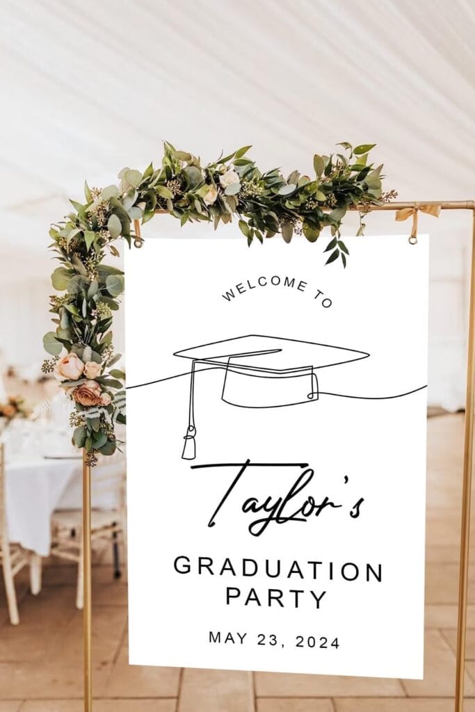 Set the tone for your graduation party with a charming welcome sign. Whether it’s a personalized board or a creative display, this inviting touch greets your guests with warmth and style. Make a memorable first impression as they step into a celebration tailored to honor your achievements.