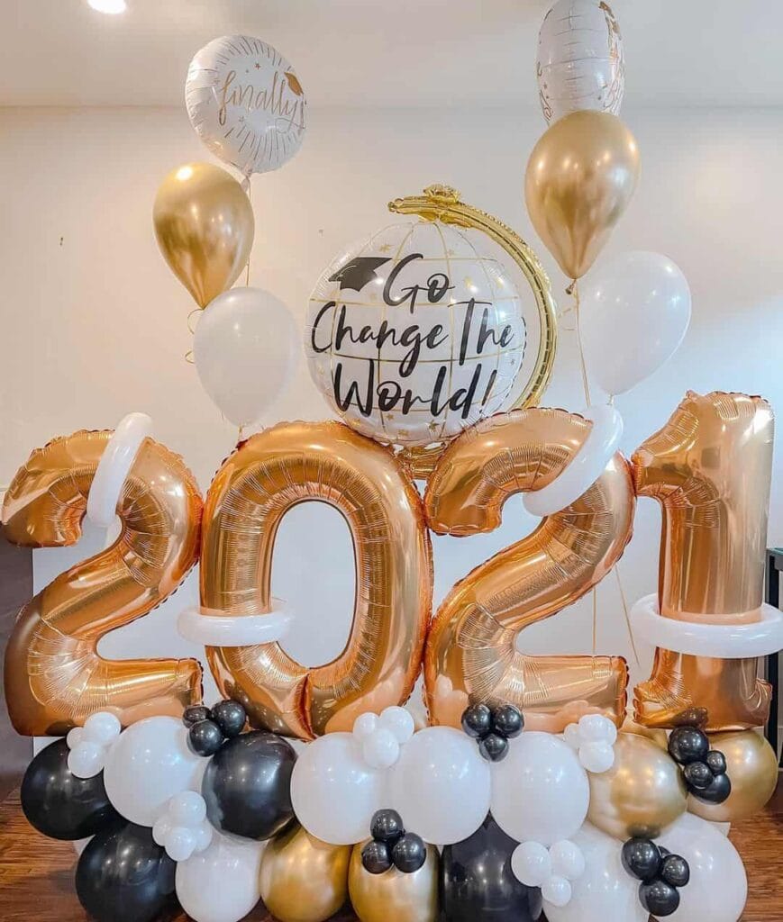 Transform your venue into a world of celebration with the “Go Change the World” Graduation Balloon decor. This inspiring theme not only adds visual appeal but also serves as a reminder of the impact you’re destined to make.
