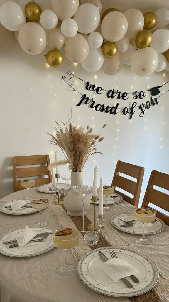 Elevate your graduation celebration by hosting a Classy Lunch or Dinner. Whether it’s a formal sit-down affair or a casual buffet, this idea adds a touch of sophistication to your party.