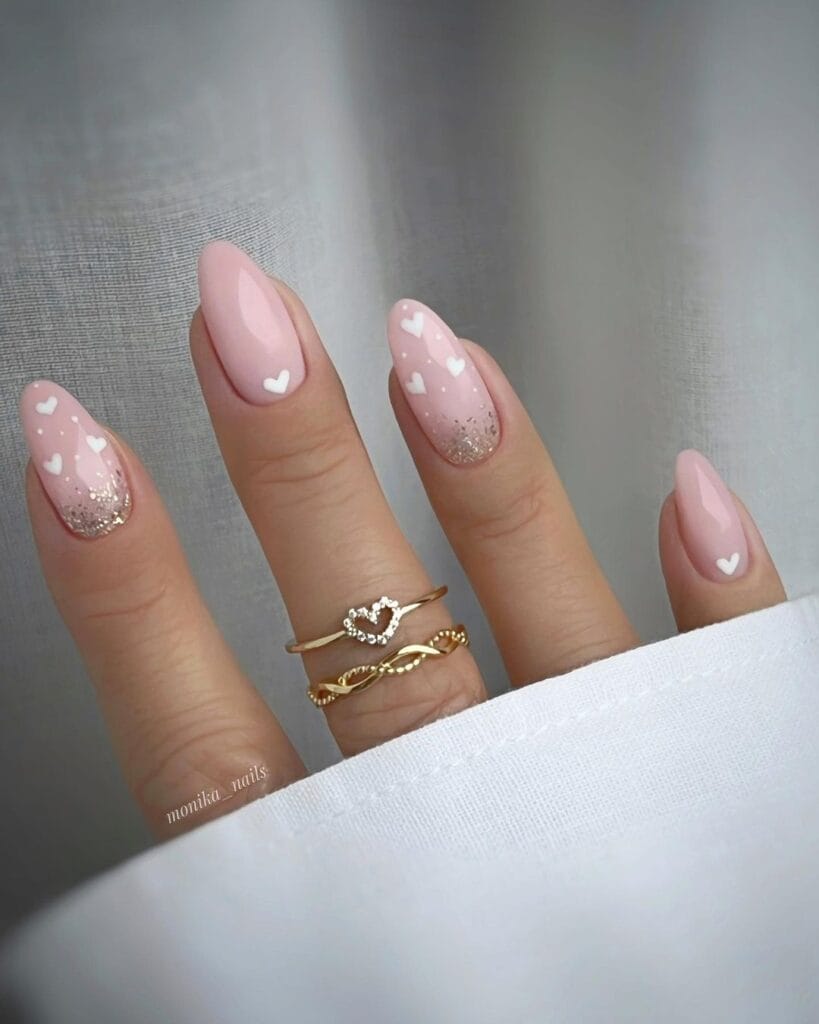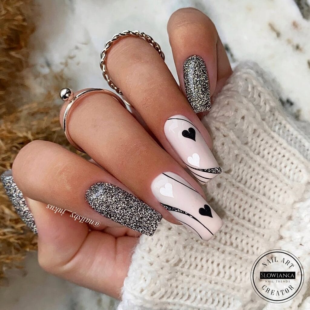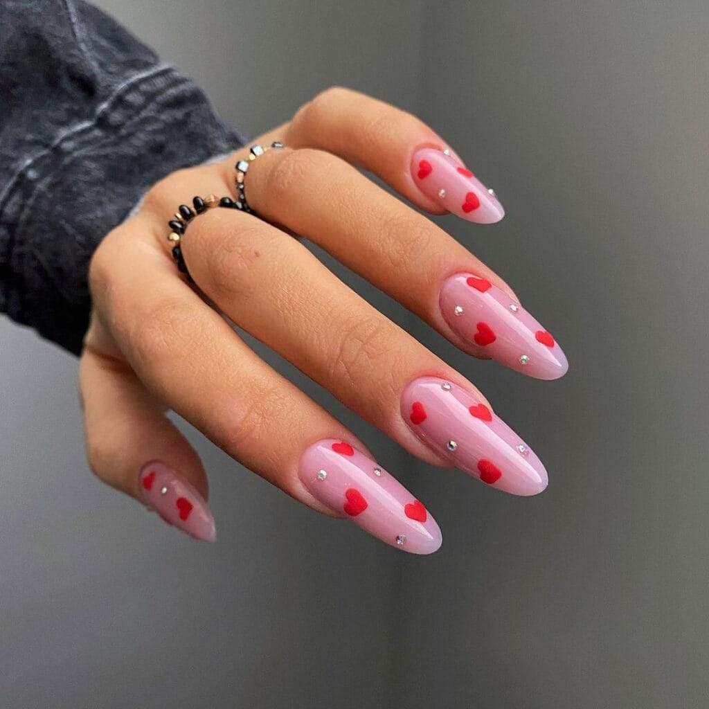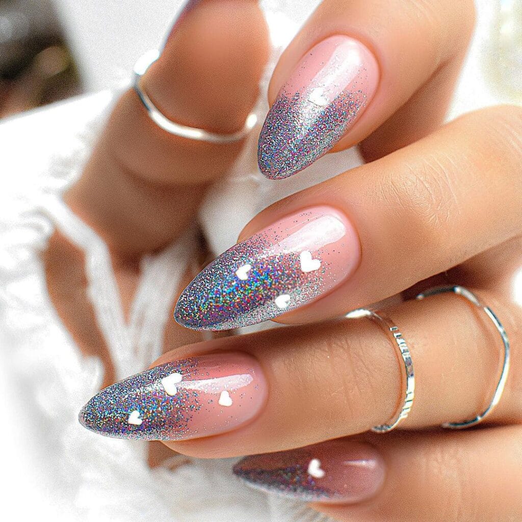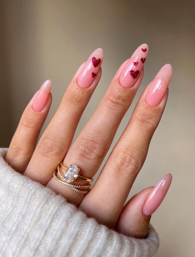 4. Glittering Romance: Sparkling Heart Valentine’s Day Nail Art