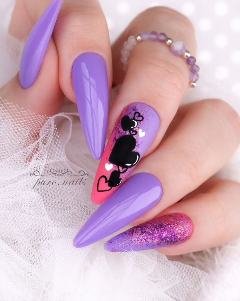 1. Edgy Elegance: Black Heart Valentine’s Day Nail Art