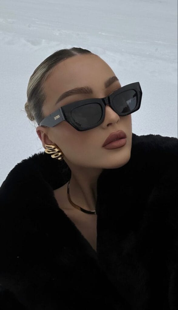 Make a statement with oversized sunglasses that exude mystery and glamour. Perfect for elevating a sleek winter outfit, these shades add a touch of sophistication while keeping the focus on your bold aesthetic. A must-have accessory for instant elegance.
