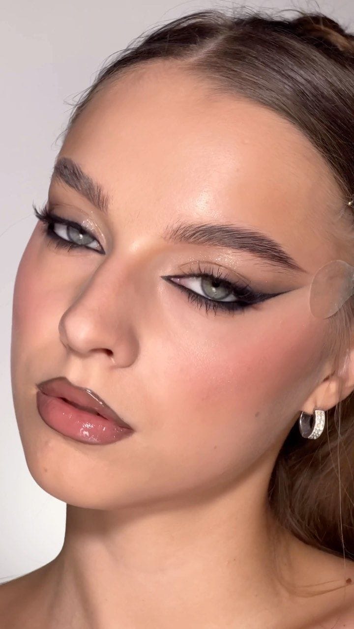 This timeless makeup style defines the eyes with sharp, dramatic winged eyeliner, channeling confidence and mystery. Pair it with a neutral lip or bold red for a truly captivating look.