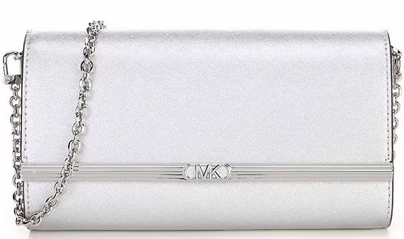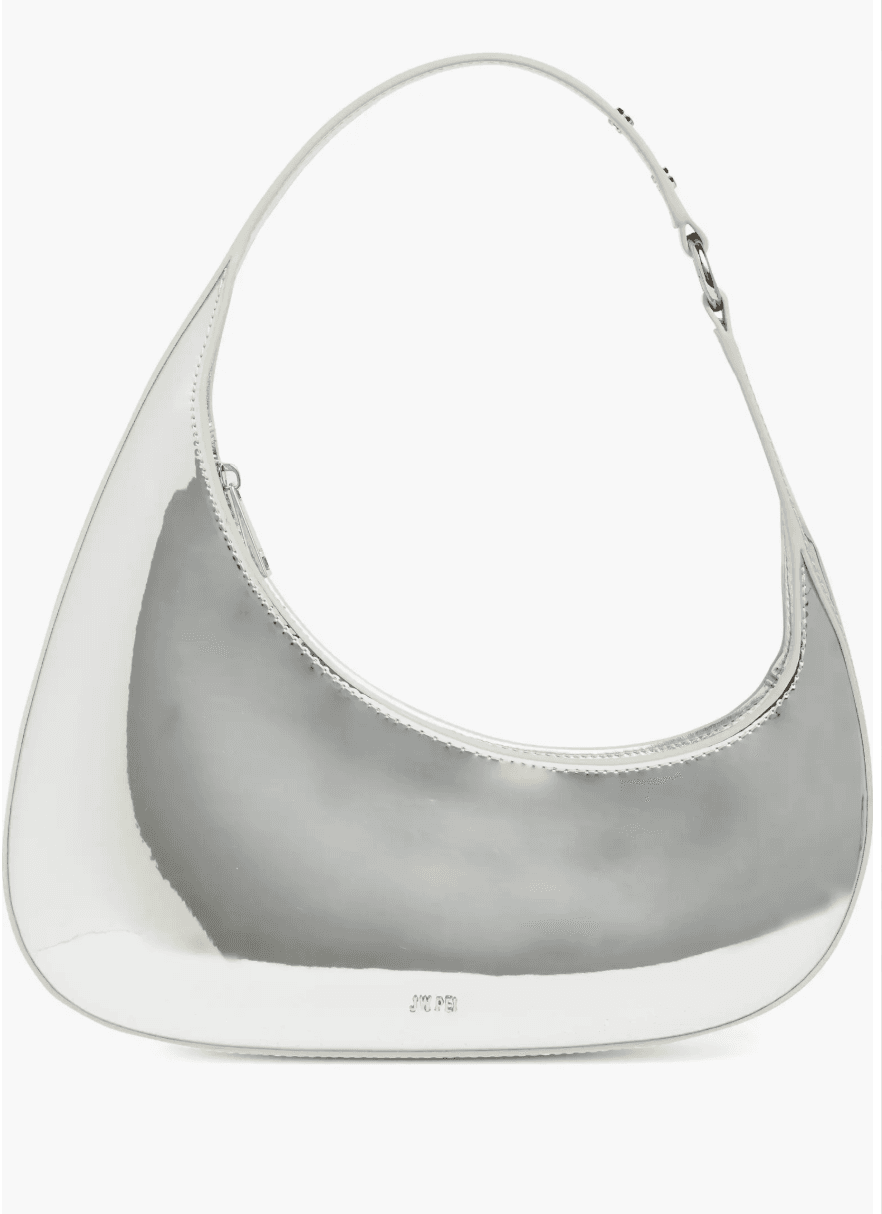 This look nails the effortless glam vibe with an oversized white button-down shirt tucked into a show-stopping silver sequin wrap skirt. She keeps it minimal yet dazzling, with a silver bag that ties everything together for that cool-girl NYE energy!