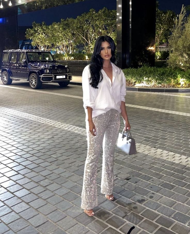 This outfit is perfect for those who love bold contrasts and unique combinations. Pair it with simple accessories to balance the drama and let the sparkle shine.
