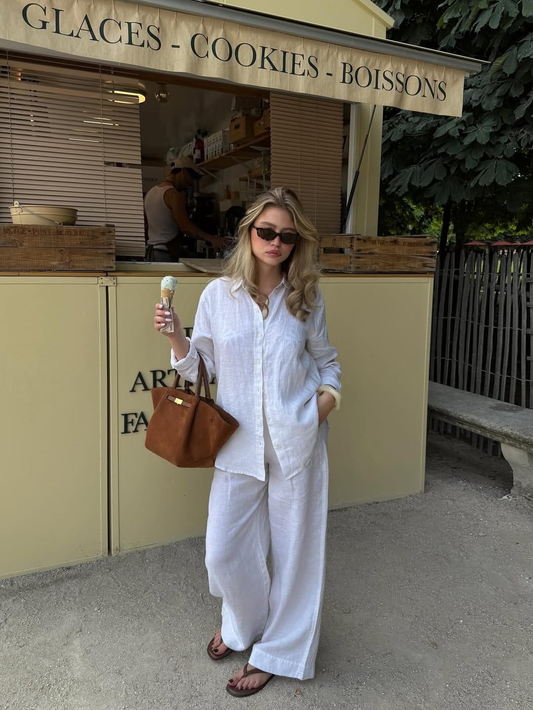 18. White Linen Shirt and Wide-Leg Trouser Set in the Tuileries