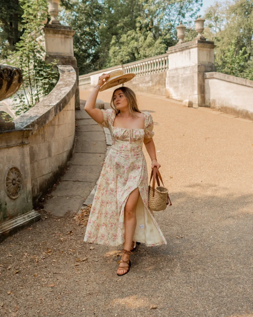 Whether you’re picnicking in the park or exploring the local farmer’s market, this outfit exudes effortless charm and feminine flair.