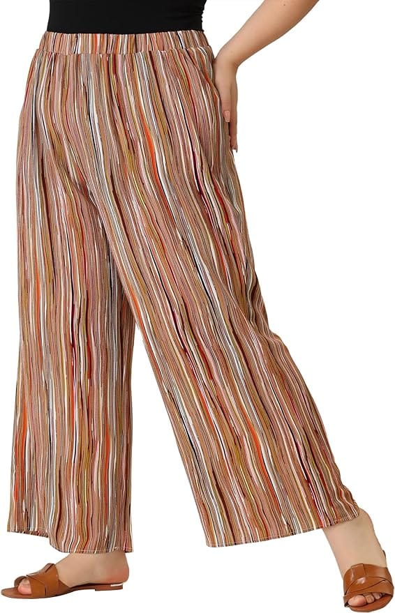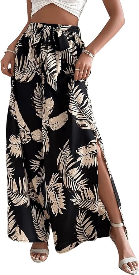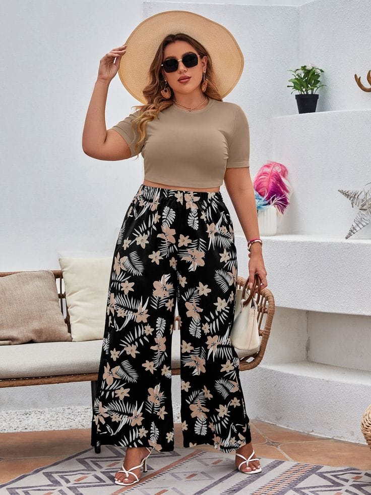 22. Tropical Vibes: Plus Solid Crop Top & Tropical Print Wide Leg Trousers