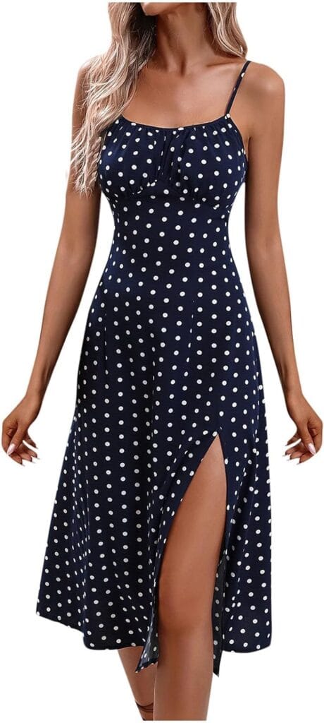 This charming dress combines the timeless appeal of polka dots with a flattering silhouette, perfect for sunny days spent picnicking in the park or attending garden parties with friends.