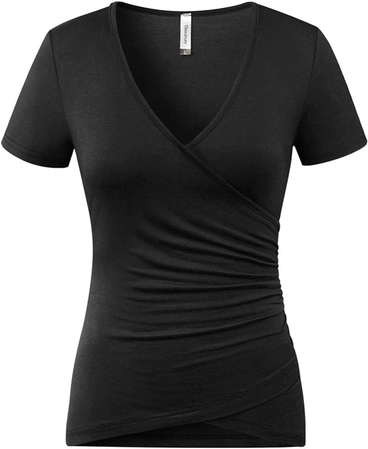 7. Classic Sophistication: Black Top with Ruched Front and Back Midi Skirt