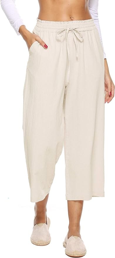 Embrace the summer breeze with this chic ensemble pairing a breezy crop top with flattering wide-leg trousers.