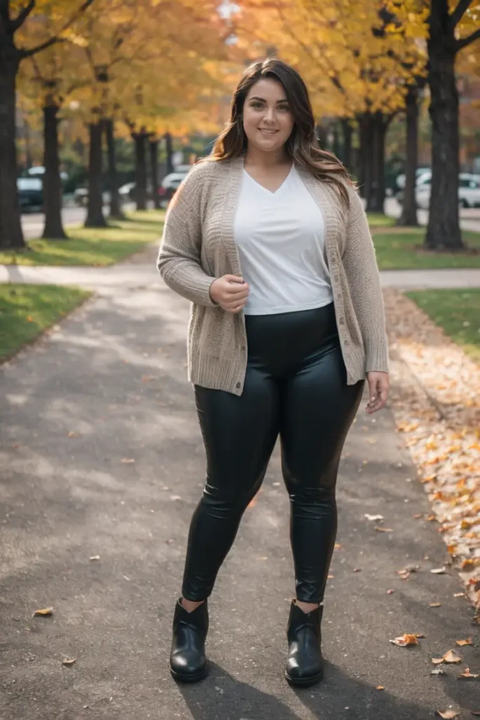 1. Cozy Cardigan Paired with Leather Leggings for Effortless Chic