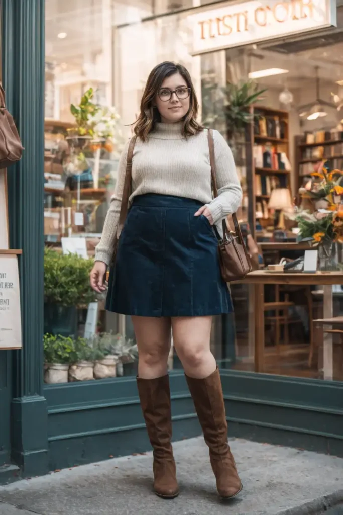 For a classic look, a turtleneck sweater and skirt combo never fails. It’s timeless, chic, and perfect for keeping cozy while still looking polished for your Thanksgiving celebrations.