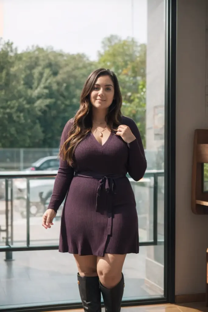 4. Sweater Dress Styled with Knee-High Boots for Ultimate Comfort