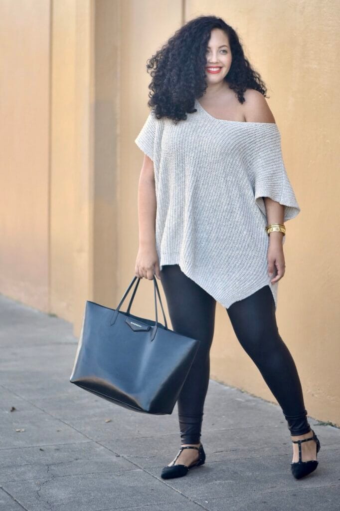 @ girlwithcurvesPairing an oversized sweater with leather leggings and flats is a chic yet comfy Thanksgiving look. The mix of textures adds sophistication while keeping the outfit easy and relaxed.