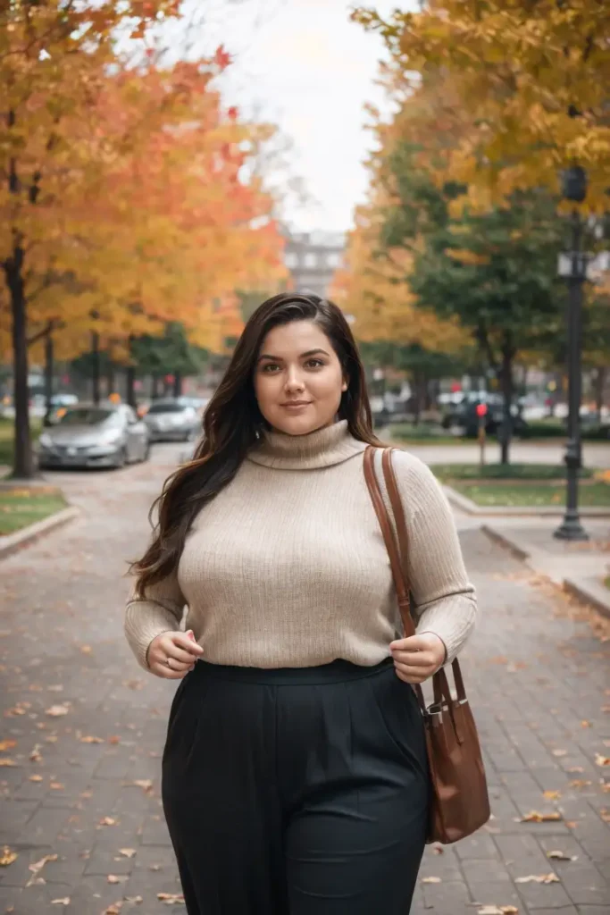 5. Neutral Turtleneck Sweater with High-Waisted Pants for a Sleek Look
