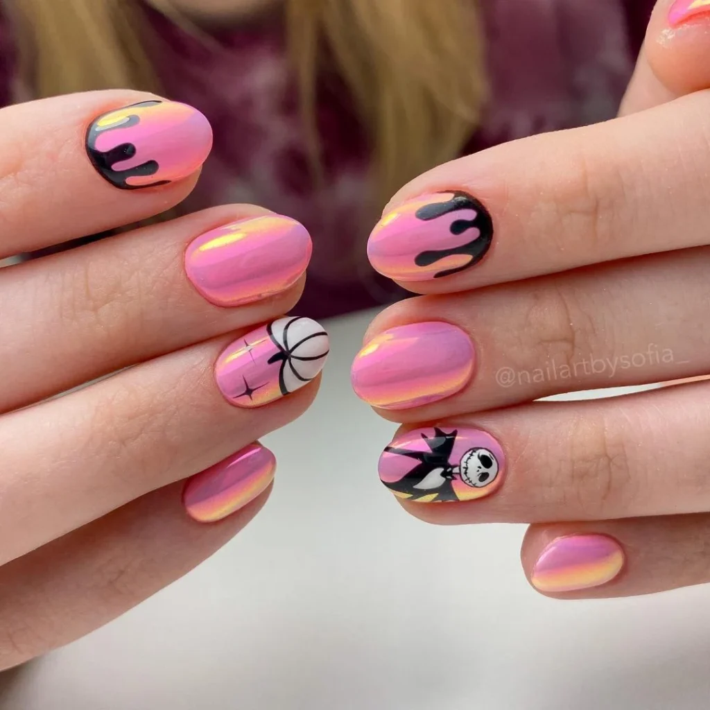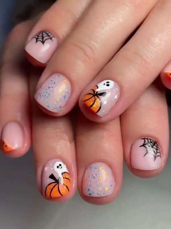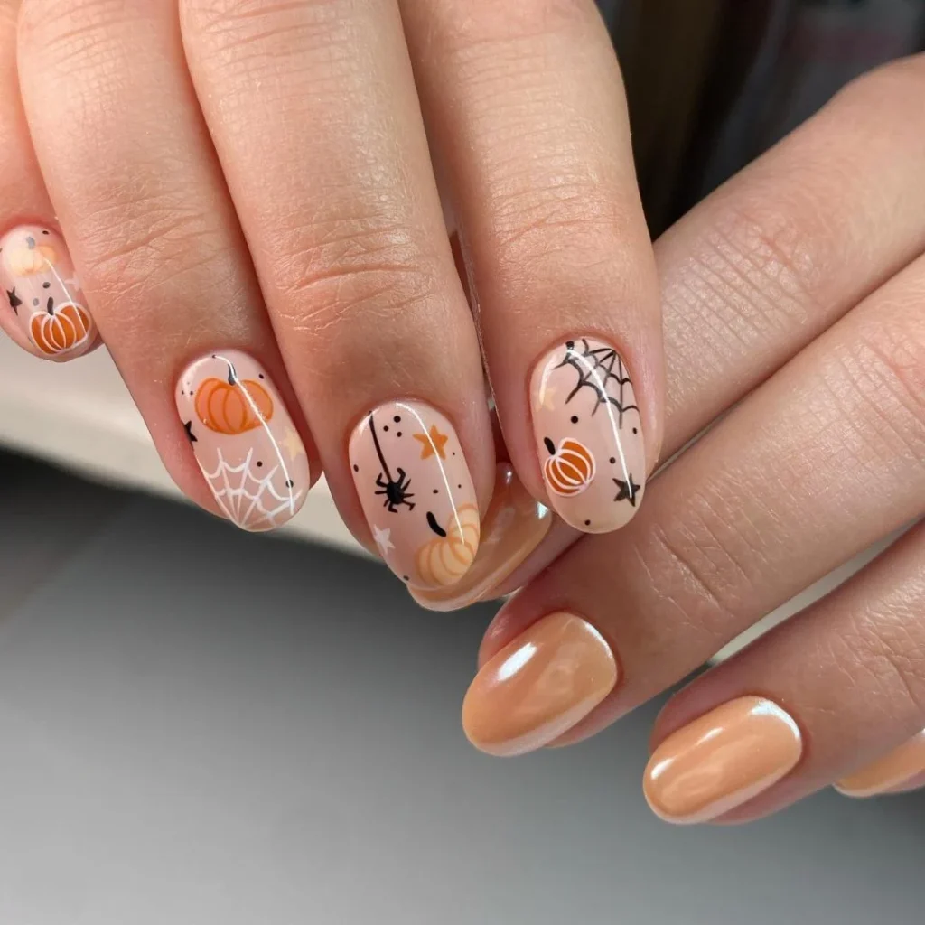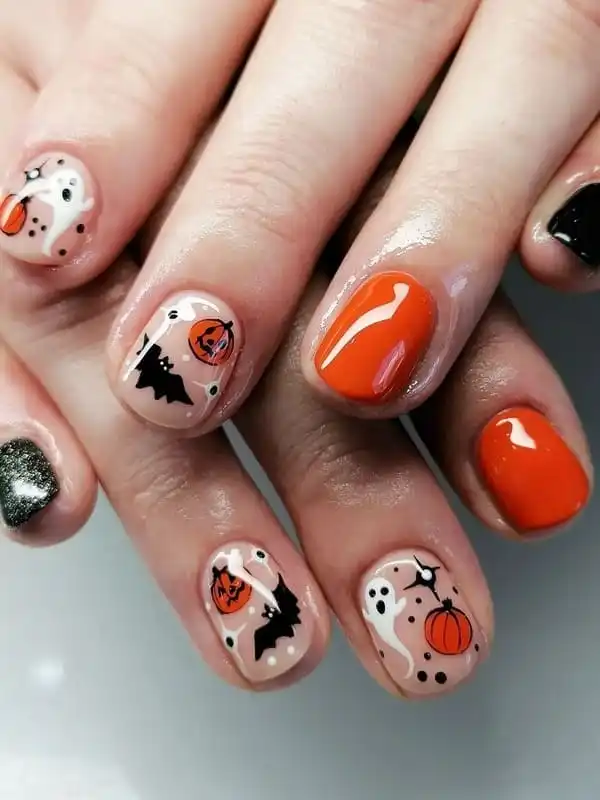 6. Spooky Season: Halloween-Inspired Short Fall Nails