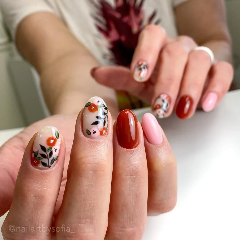 7. Floral Fantasy: Elegant Short Fall Nail Designs