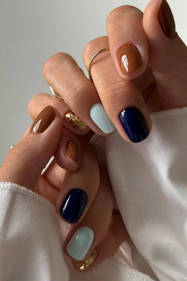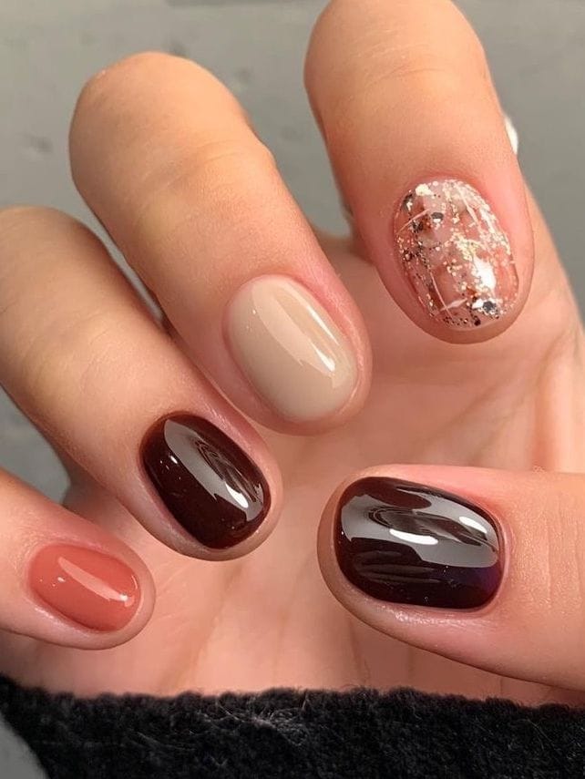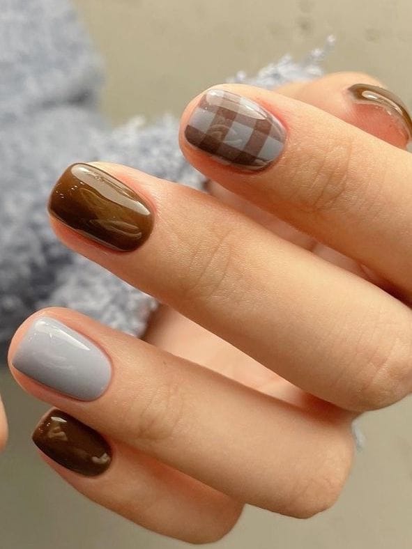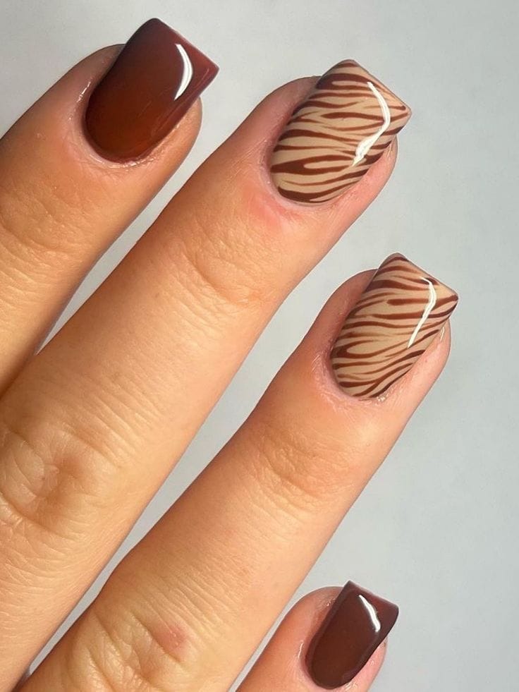 Think deep chocolate hues, warm caramels, and subtle taupe shades in minimalist designs or intricate patterns, perfect for adding a touch of sophistication to your fall look.
