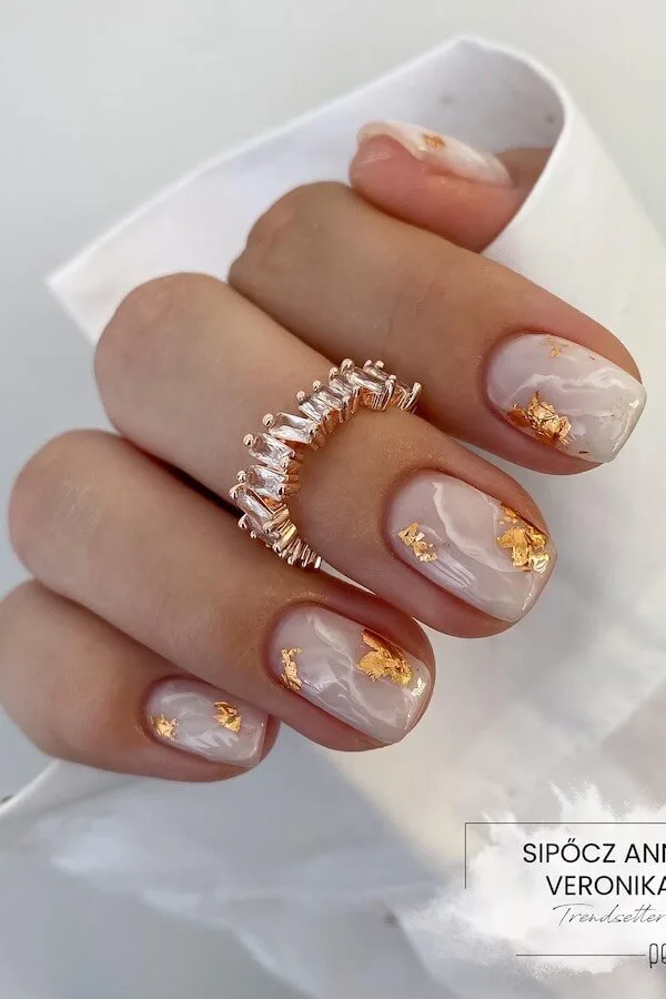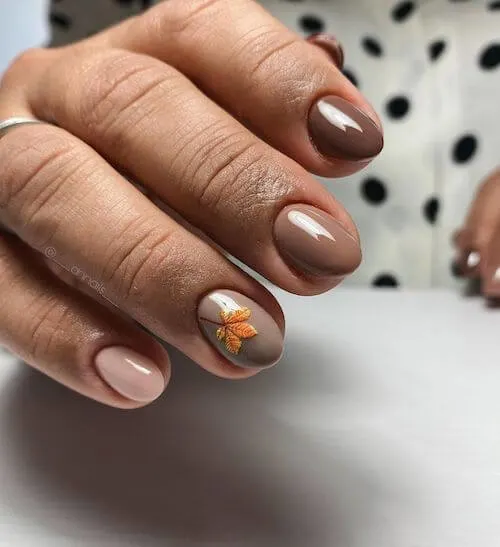 Embrace sophistication with golden short fall nails that add a touch of glamour to any autumn ensemble.