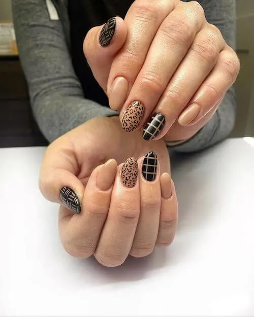 Whether it’s leopard spots, zebra stripes, or chic snake patterns, these nails offer a bold statement for fall, pairing effortlessly with both casual denim and evening attire.