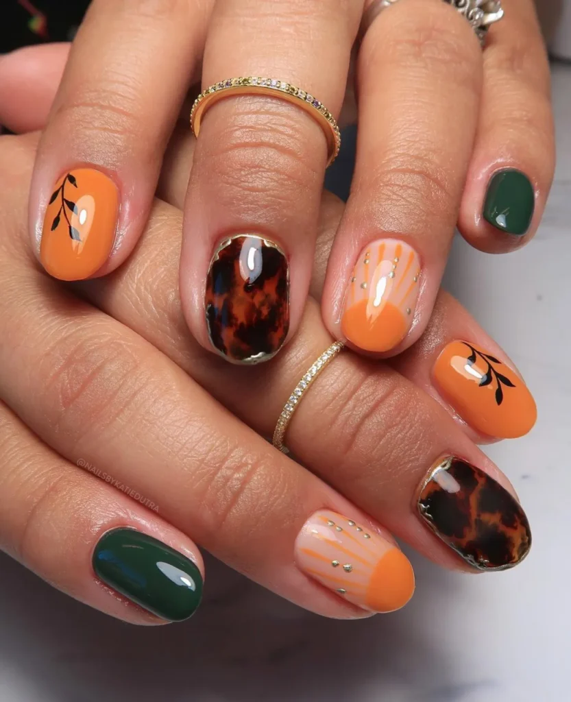 From bold tangerine to deep burnt orange, these nails add a pop of color to your fall wardrobe, bringing sunshine to even the chilliest autumn days.