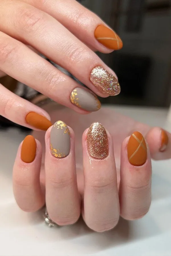 Let your nails shine with sparkling fall nail designs that capture the essence of the season’s festivities.