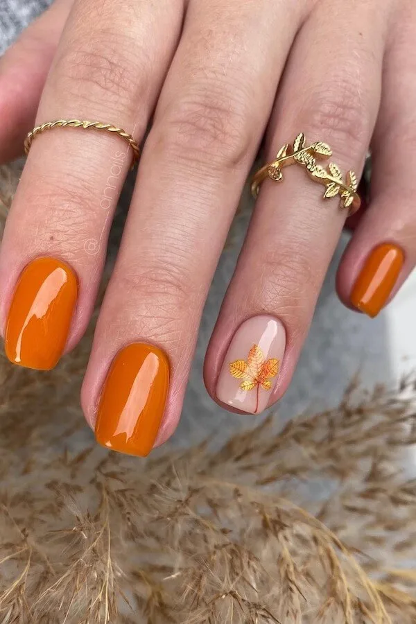Make a statement with vibrant orange short fall nail ideas that capture the warmth and energy of the season.