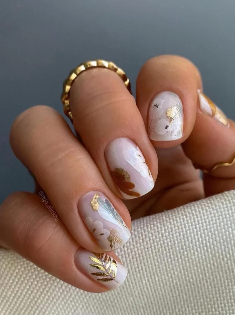 Embrace floral elegance with short fall nail designs that bloom with sophistication.