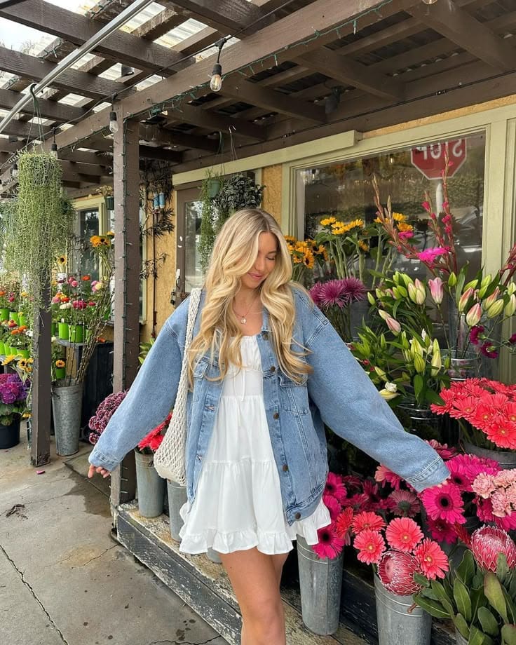 A comfortable yet stylish one-and-done outfit that’s perfect for spring days. Choose a flowy midi dress, a shirt dress, or a ribbed knit dress in a neutral or soft pastel hue. Pair it with sneakers for a laid-back vibe or dress it up with sandals and a structured handbag.