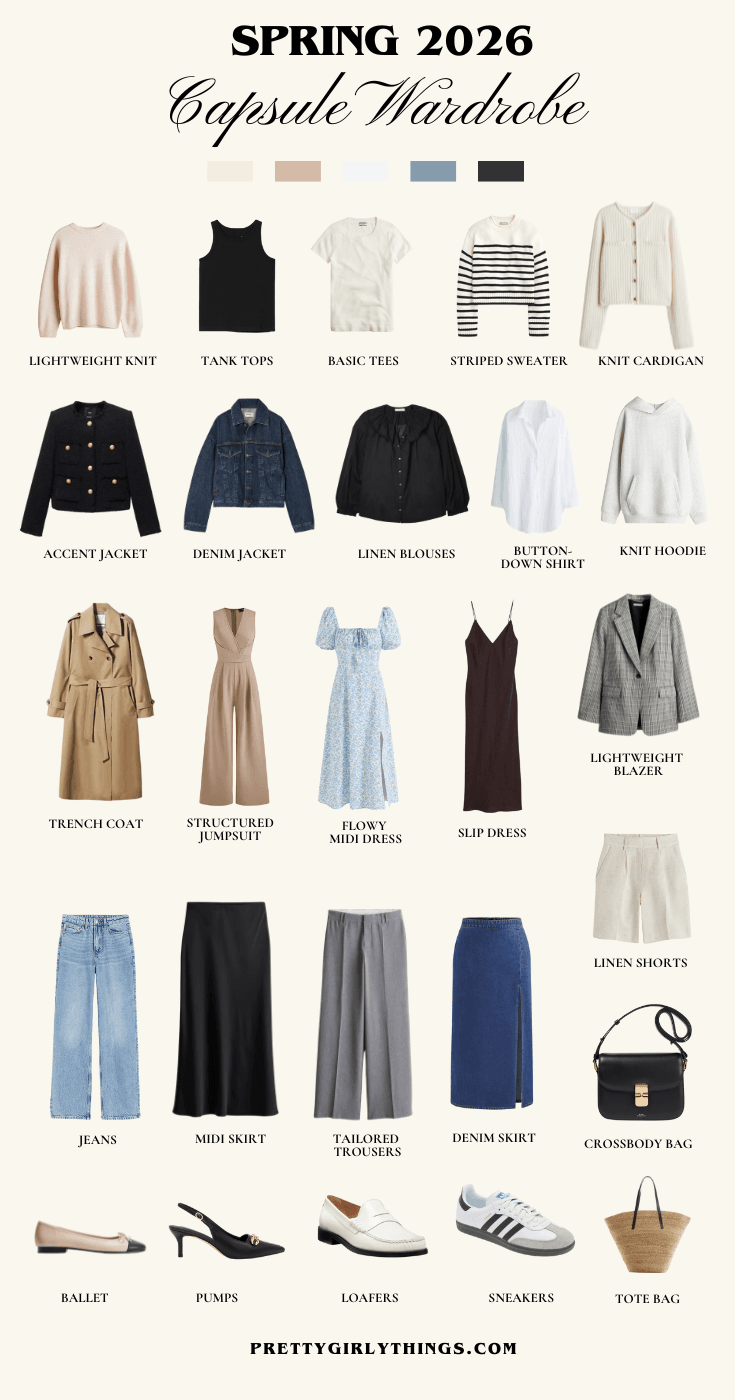 By focusing on quality over quantity, I’m streamlining my wardrobe while keeping it stylish and practical. Let’s dive into the key essentials for my Spring 2026 capsule wardrobe!