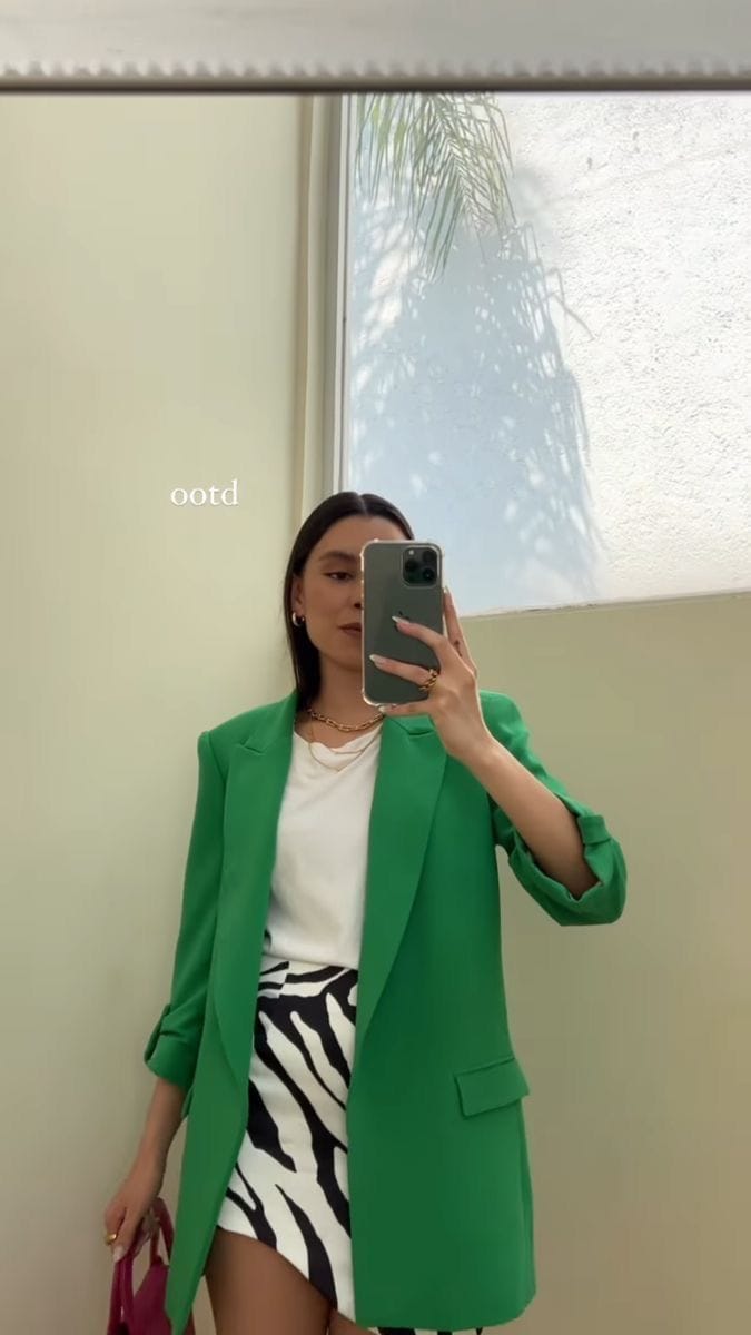 11. Vibrant Green Blazer & Zebra Mini Skirt
