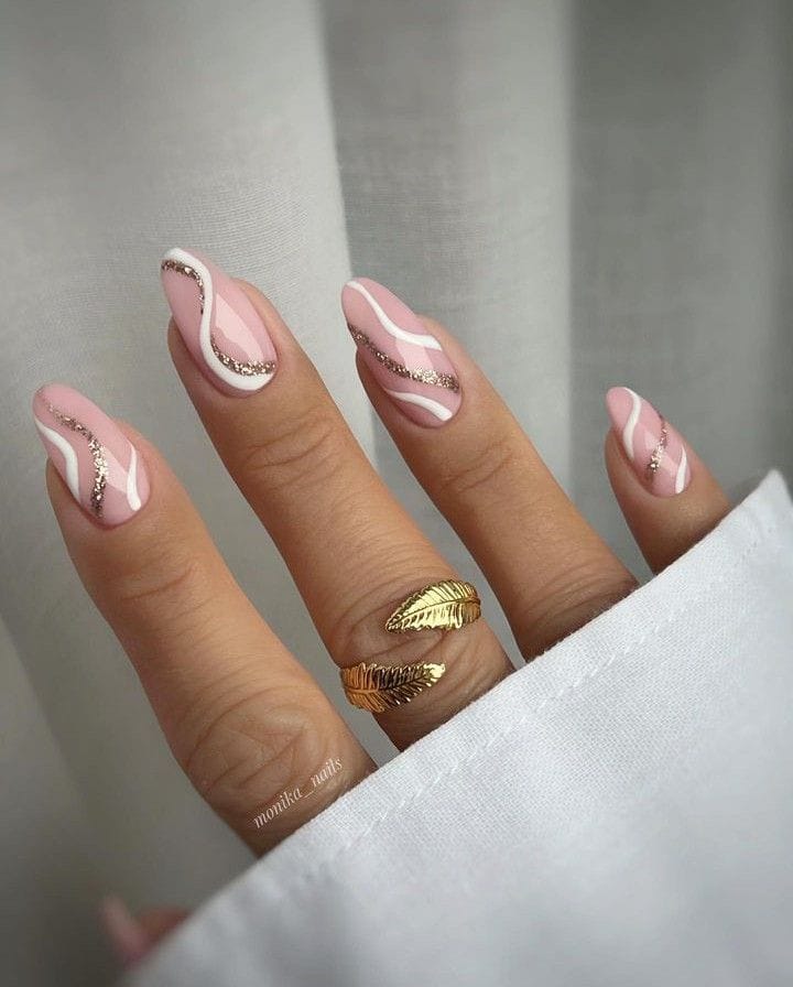 Whether you opt for subtle swirls in neutral tones or bold swirls contrasted against crisp white tips, this fusion of styles is sure to elevate your look with effortless charm and grace.