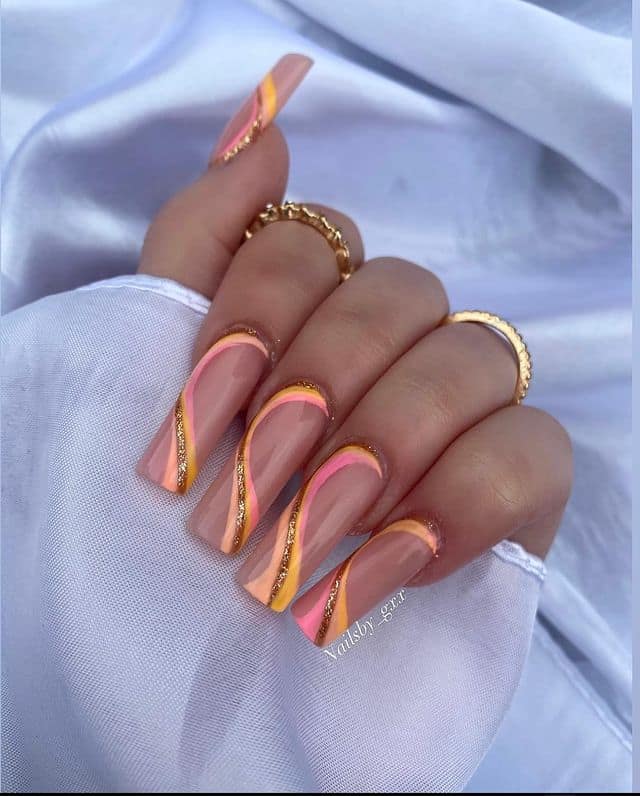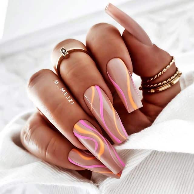Embrace the zesty allure of orange swirl nails and let your fingertips radiate with summertime vibrancy and zest.