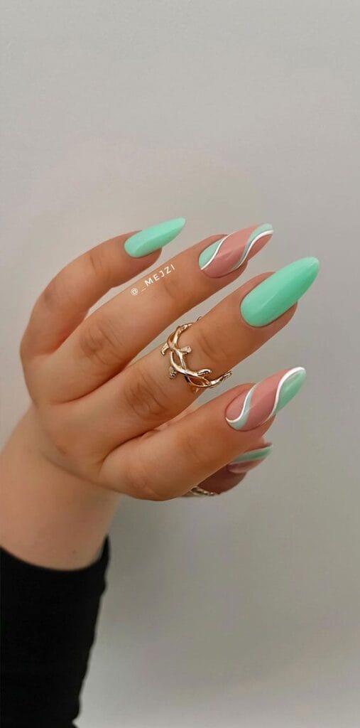 Embrace the calming allure of green swirl nails and let your manicure transport you to a verdant oasis of relaxation and renewal.