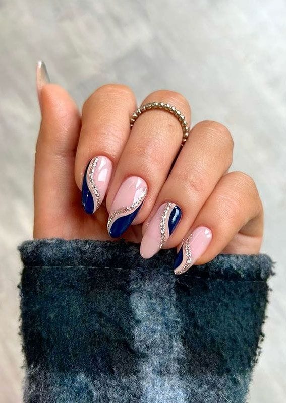 Whether adorned with swirling patterns in shades of turquoise, navy, or aquamarine, these manicures exude a sense of calmness and serenity.