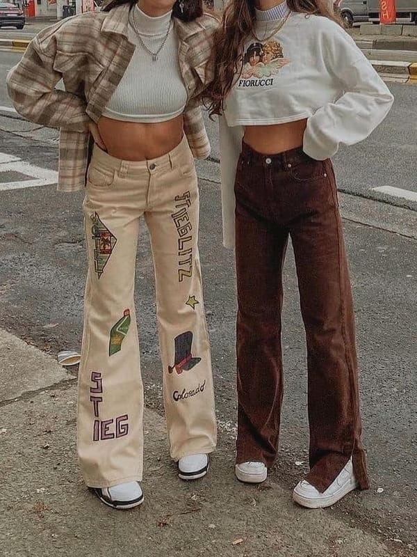 Pair this with Women Vintage Flare Pants Bell Bottoms and comfy sneakers for a stylish and comfortable ensemble that pays homage to the fashion of yesteryears, perfect for a trendy fall gathering with a hint of nostalgia.